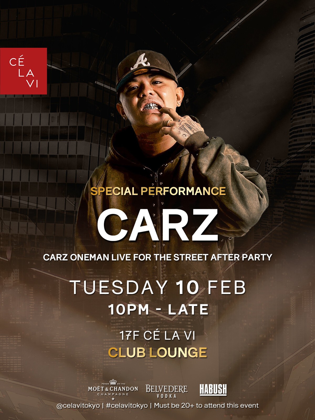 2026年2月10日(火)、渋谷・WWW にて初のワンマン公演「ONEMAN LIVE "For The Street" At WWW」の開催を予定している、今最も勢いのある若手ラッパーの1人 Carz(カーズ)が、同日夜に渋谷 CÉ LA VI TOKYO にてアフターパーティーを行うことが発表された。