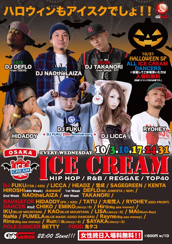 【毎週水曜アイスク】水曜カモンは『ICE CREAM』☆豪華DJ陣によるHIP HOP & FIRST CLASS MUSICをお届け!!24時まで男女入場無料&女性は1Dプレゼント★