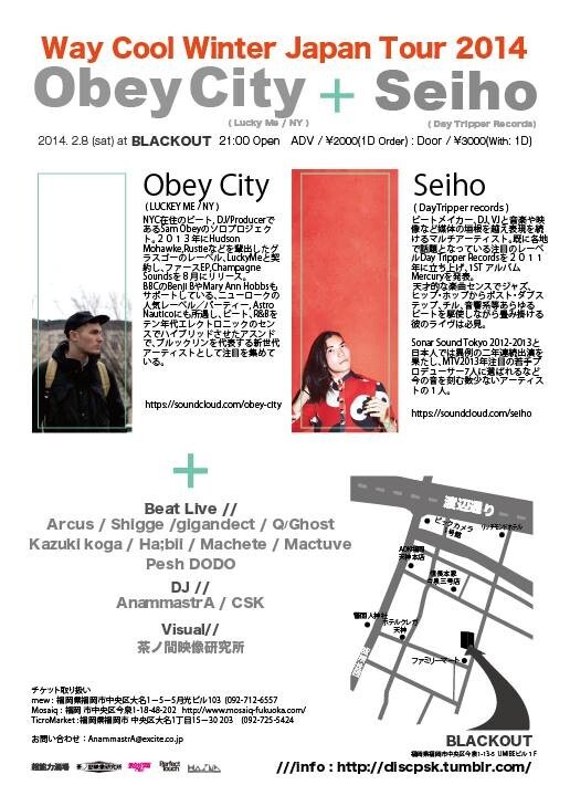 また、今回のツアーを記念し、SeihoとObey CityによるスプリットEPが大阪のレーベル、〈Perfect Touch〉より来年2月にリリース予定。