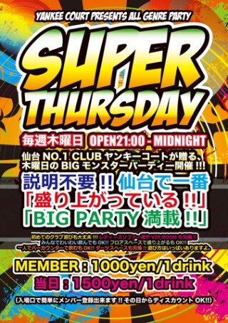 21:00? 【◇毎週木曜日◇ 【ALL GENRE PARTY】 ★NEW PARTY★ -SUPER THURSDAY- 】