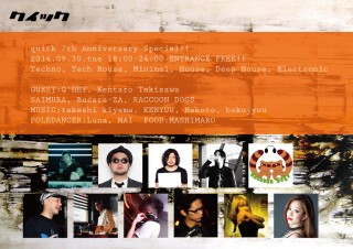 クイックレジデント陣による、テクノ、テックハウス、ミニマル等を中心に、毎回国内外で活躍するアーティストを招き、回を重ねるたびにコアなファンを魅了し獲得し続け、新宿二丁目のアンダーグラウンドシーンを代表するパーティーへと成長し続けてきた『クイック』が、7th Anniversary Special!! として開催!