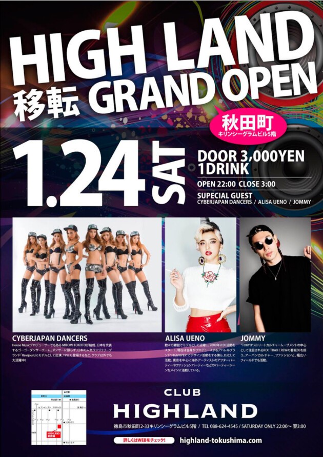 CLUB HIGHLAND移転グランドオープン、最大500人収容 四国最大級のフロア。ハイランド徳島。