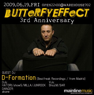 2009年6月19日、遂に3周年を迎えるButterflyEffectがKris Menace・Mutinyに続き、満を持して招聘するのはスペイン・ハウス・シーンを代表するDJ/アーティスト、D-FORMATION!!!!!!!!!!