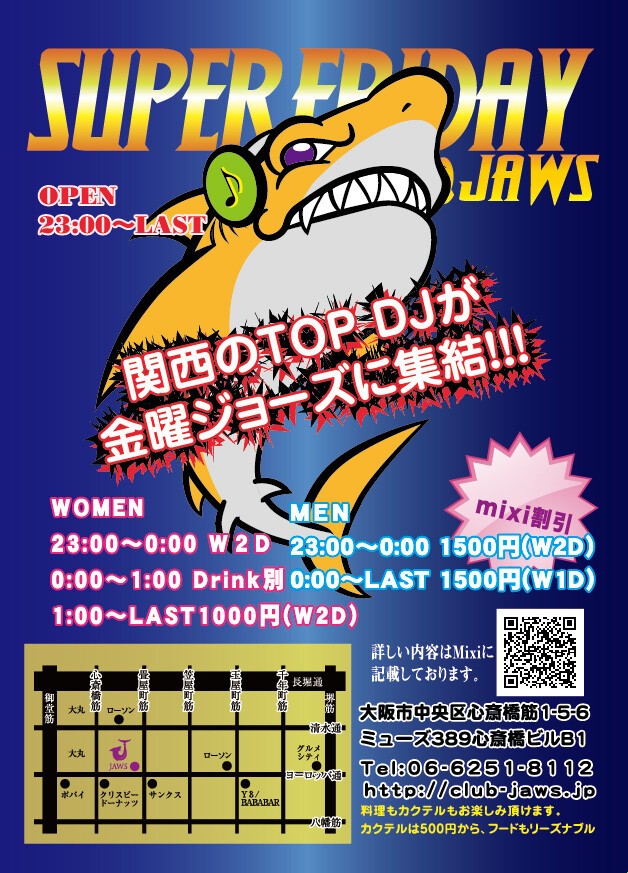 電話番号:06-6251-8112(club JAWS)スタッフまで