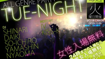 【毎週火曜オールジャンル】話題沸騰の火曜カモン!!毎週大爆発!!カモチューでおなじみの噂のオールミックスパーティー『TUE-NIGHT』☆☆24時まで男女入場無料&女性は1Dプレゼント★★