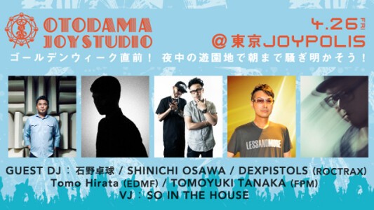 DAISHI DANCEらが出演し大好評で終了した「音霊 OTODAMA SEA STUDIO」と「東京JOYPOLIS」のコラボレーションイベント、OTODAMA JOY STUDIOが4月26日(金)に早くも2回目のイベントを開催する! もっと読む …