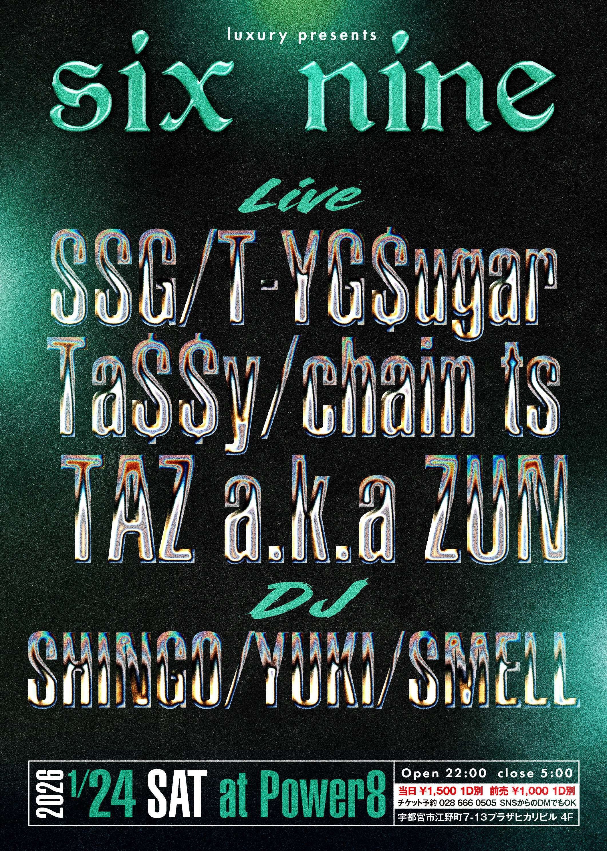 six nine ▼LIVE, SSG, T-YG$ugar, Ta$$y, chain ts, TAZ a.k.a ZUN, ▼DJ, SHINGO, YUKI, SMELL,